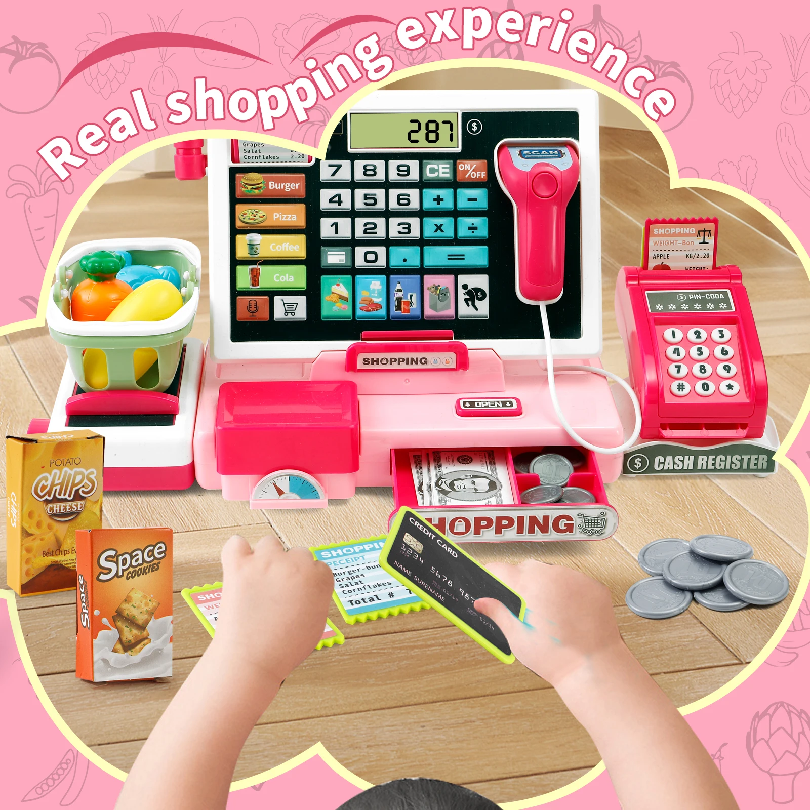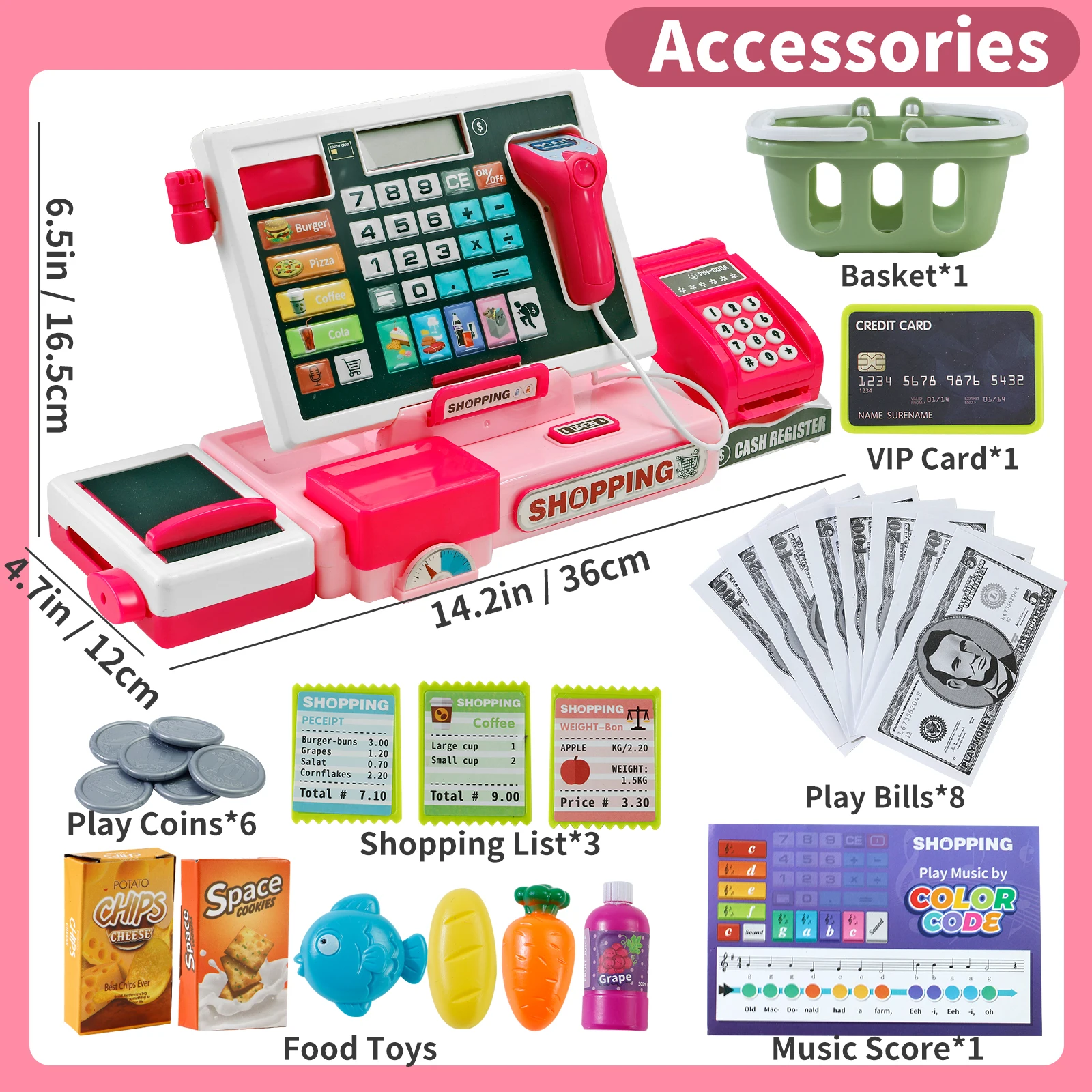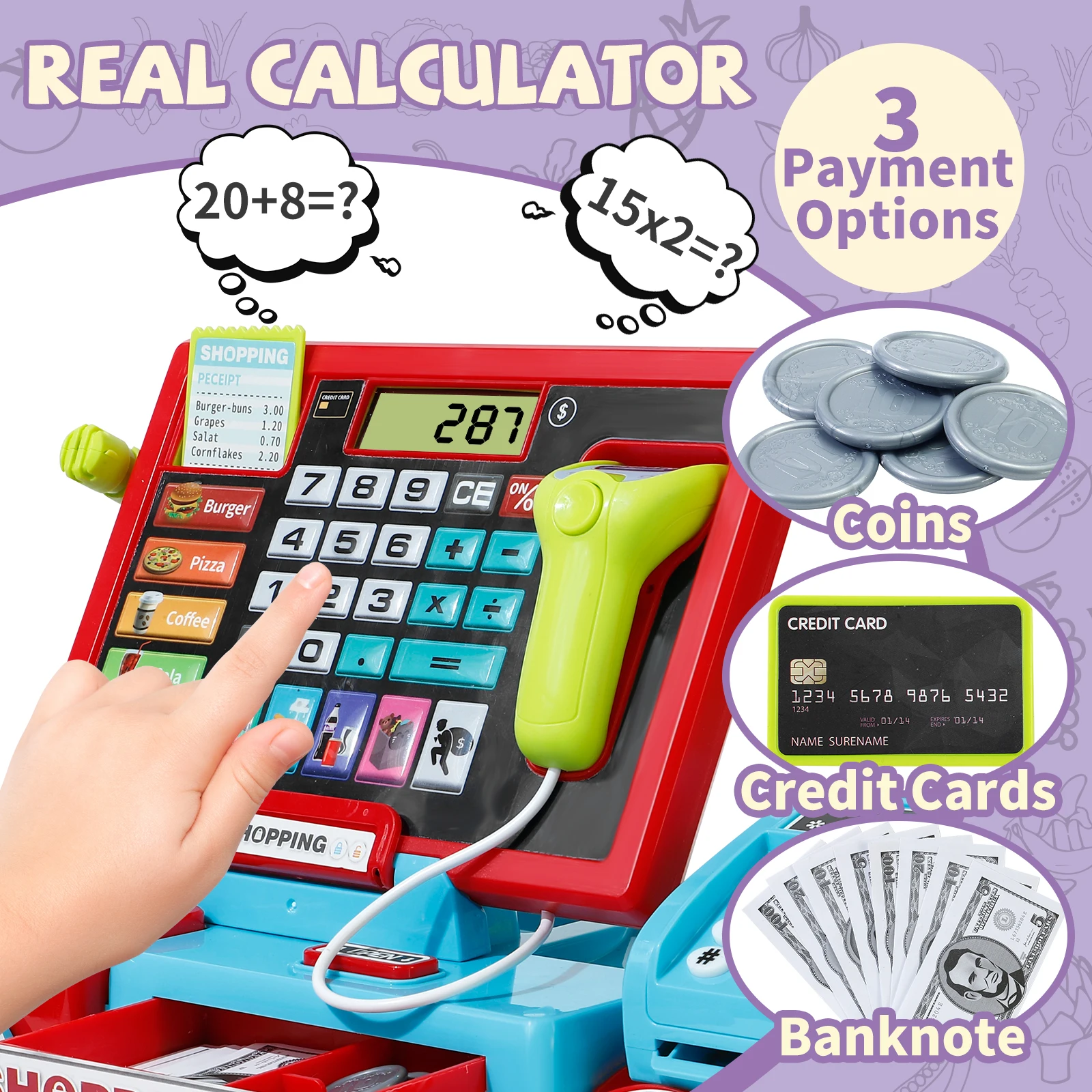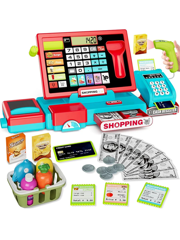 Shopping Cash Register Playset with Real Calculator, Pretend Play Store, Learning Toy, Christmas/Halloween/New Year Gift